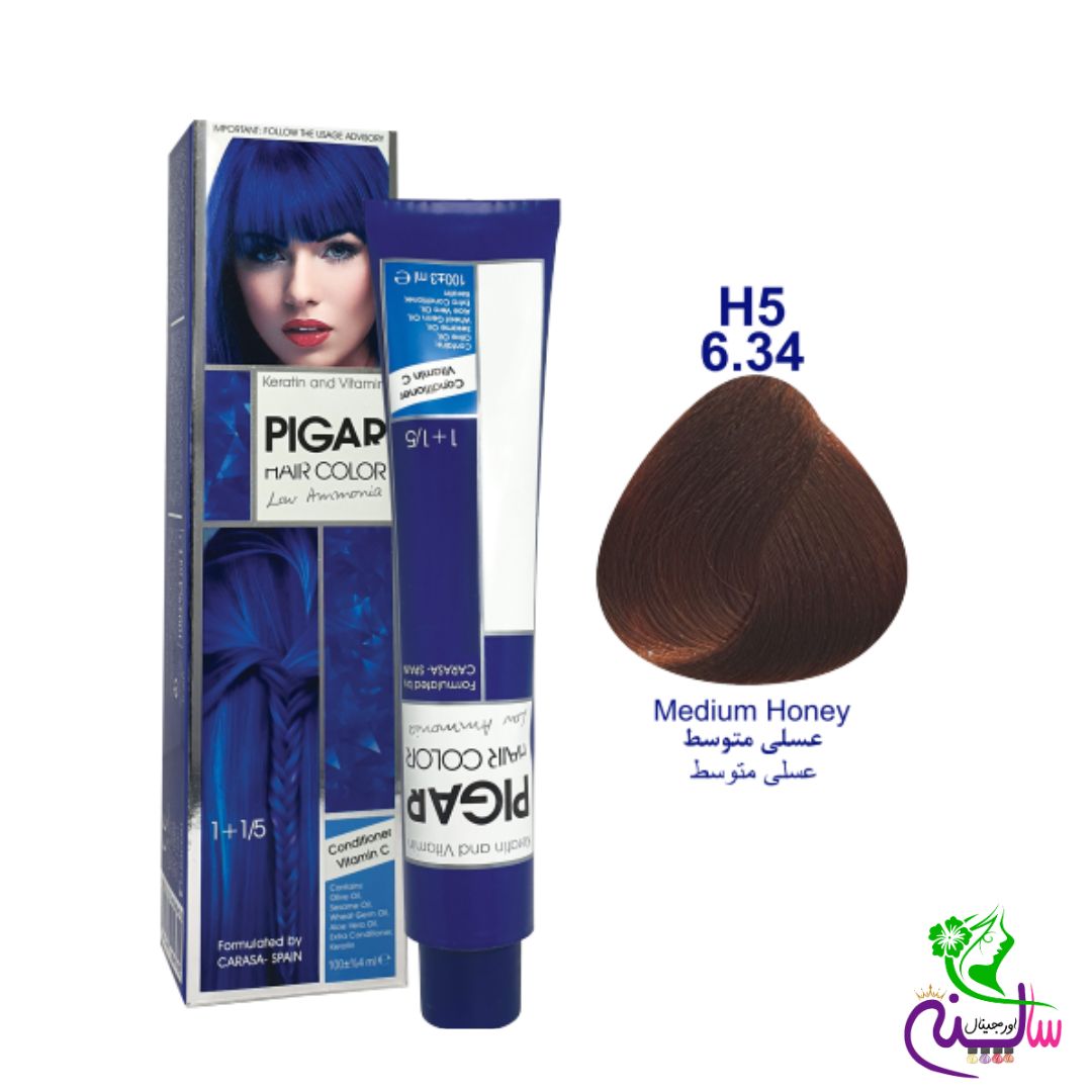 رنگ مو پیگار عسلی متوسط شماره 6.34 H5 pigar